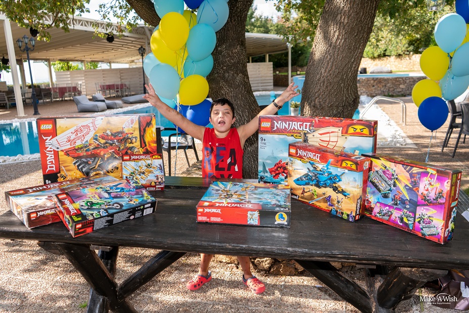 Η φανταστική ευχή του, λοιπόν, εκπληρώθηκε σε δύο μέρη, με περίπου έναν χρόνο ανάμεσά τους. Στα τέλη του 2020 πραγματοποιήθηκε το πρώτο μέρος, το οποίο του έδωσε μεγάλη χαρά. Του πήγαμε πολλά από τα παιχνίδια Lego που είχε ζητήσει (όχι όλα, θέλαμε να υπάρχει προσμονή για το δεύτερο μέρος!), μαζί με γλυκά, και πολλά άλλα δωράκια για εκείνον και φυσικά τις αδελφούλες του! Ξετρελάθηκε, χοροπήδαγε, φώναζε από χαρά!
