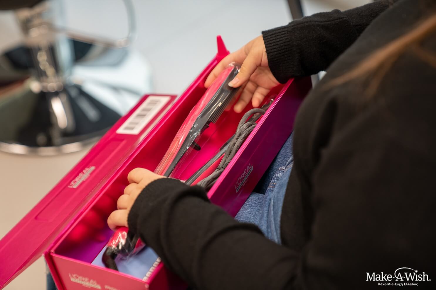Μια και η ευχή της σχετίζεται άμεσα με μαλλιά και χτένισμα, δεν υπήρχε πιο ιδανικό σκηνικό από έναν χώρο αφιερωμένο στην κομμωτική. Όταν έφτασαν στο κομμωτήριο, μαζί με τη νεράιδα, μπαλόνια με το όνομα της Ρ. στόλιζαν τον χώρο, ενώ γλυκές λιχουδιές ήταν απλωμένες σε κάθε γωνιά. Βεβαίως, δέχθηκαν μία θερμότατη υποδοχή, όπως αρμόζει σε μία πρωταγωνίστρια! Η Ρ. ήταν η πρωταγωνίστρια στο δικό της μοναδικό ταξίδι της ευχής.