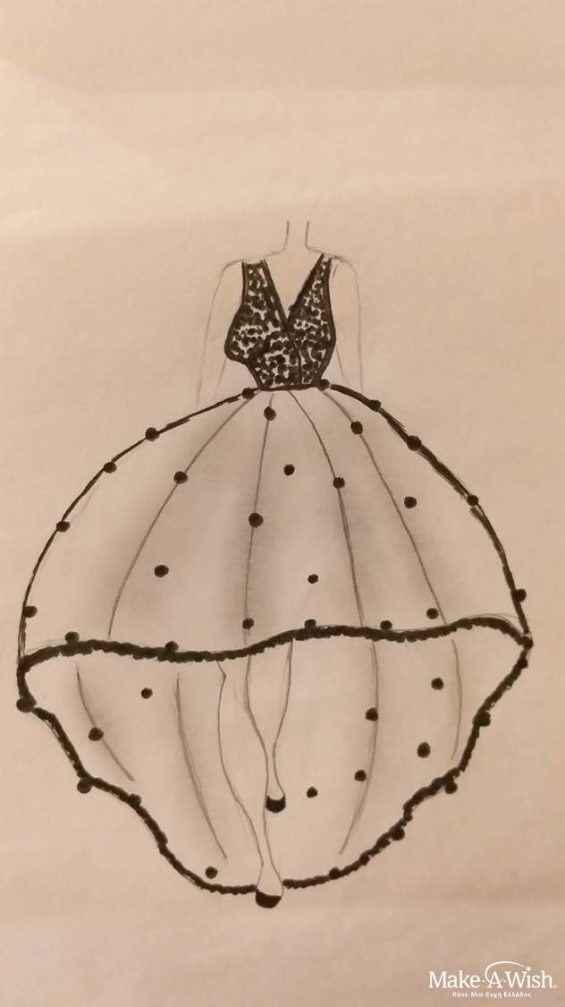 Πολυτάλαντο το κορίτσι μας! Ασχολείται με τόσο πολλά! Όση ώρα μας μιλούσε για το χορό, τη ζωγραφική, τη μαγειρική, τις κατασκευές και τη φωτογραφία, τα αγαπημένα της χόμπι, το πρόσωπό της έλαμπε κυριολεκτικά. Μετά μας έδειξε τα σχέδιά της και μείναμε άφωνοι. Απεικόνιζαν τρία παραμυθένια φορέματα, σχεδιασμένα με την παραμικρή λεπτομέρεια, τα οποία ήθελε να φτιαχτούν και να τα φορέσει. Αυτά ως δια μαγείας, «ξεπήδησαν» από το χαρτί και ήταν πανέτοιμα για μεταμορφώσουν την ταλαντούχα, νεαρή μας σχεδιάστρια σε μοντέλο! Αποδείχθηκε για άλλη μια φορά, πως οτιδήποτε ονειρεύεσαι μπορεί να γίνει πραγματικότητα, αρκεί να το θέλεις πολύ και να το εύχεσαι με όλη σου την καρδιά!