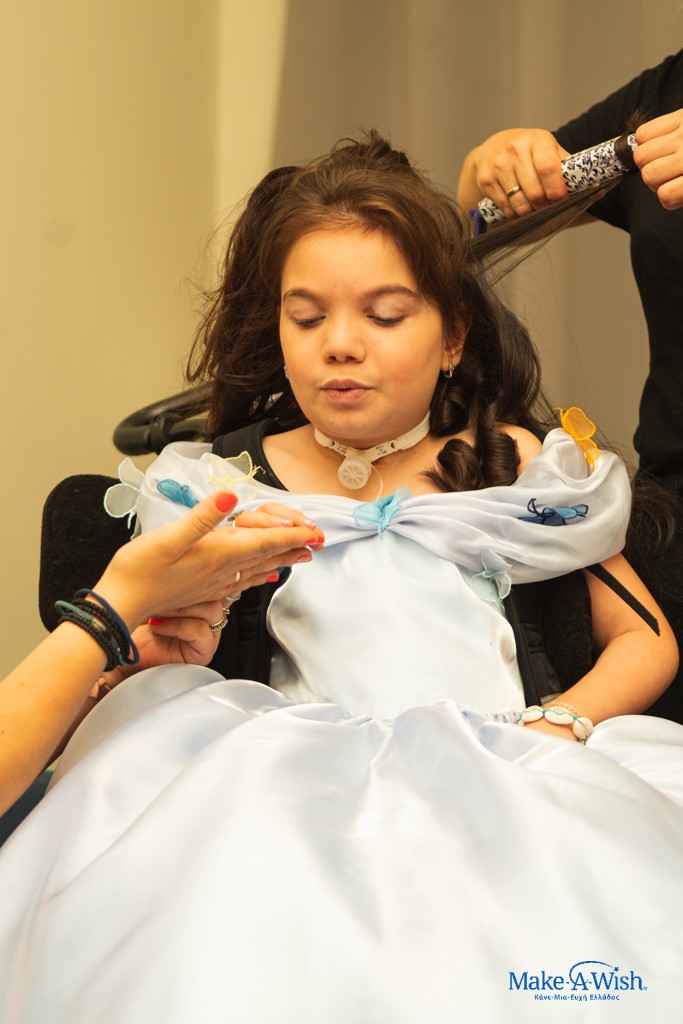 Τη μεγάλη ημέρα, η Μαρία, συνοδευμένη από την αδερφή της, έφθασε στο χώρο της ευχής της και τα ματάκια της μαρτυρούσαν τη χαρά και την ανυπομονησία της. Στην είσοδο την υποδέχτηκαν οι νεράιδες και – μέσα από μία διαδρομή ανάμεσα σε τρεχούμενα νερά, δέντρα και χρωματιστά μπαλόνια – την οδήγησαν στο ιδιαίτερο διαμέρισμά της. Εκεί, την περίμεναν μοδίστρες, κομμώτριες, νεράιδες του μακιγιάζ και πολλές ακόμα.