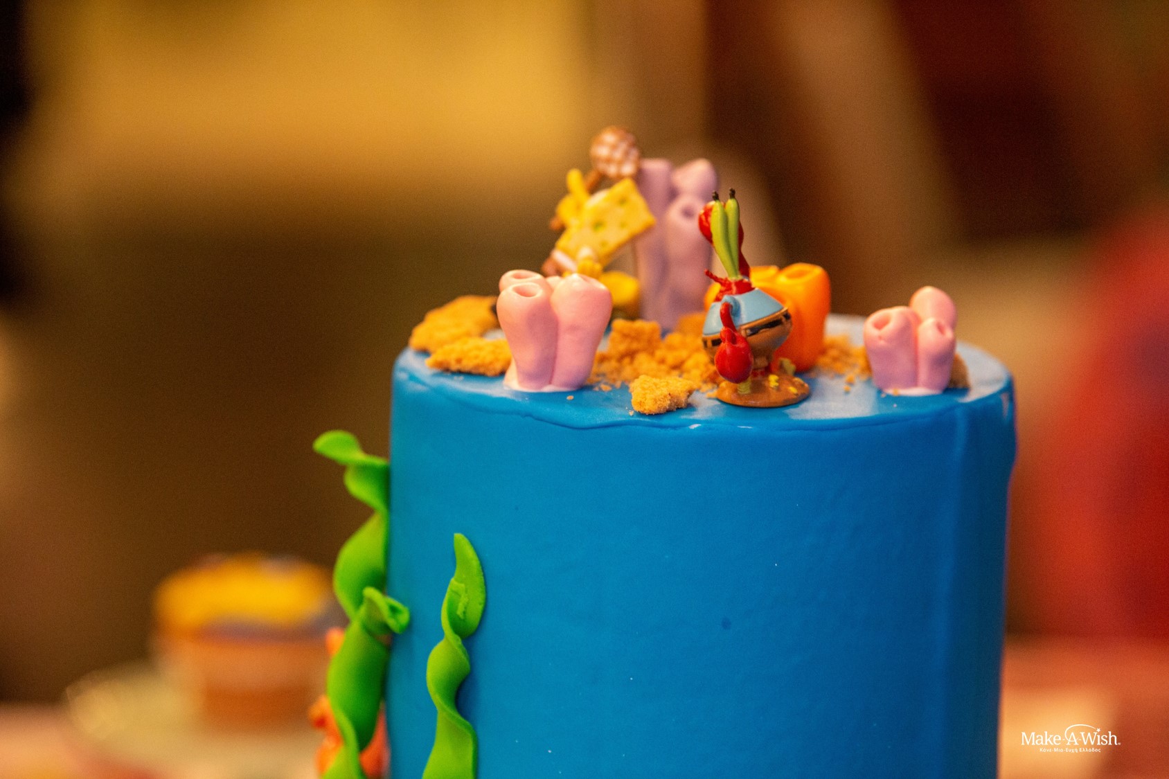 Έτσι και έγινε, οι μέρες πέρασαν γρήγορα και οι νεράιδες έφεραν τον Μπομπ από τον βυθό του Bikini για χάρη της μικρής. Την ημέρα της ευχής ήταν όλοι εκεί: ο Μπομπ με τον Πάτρικ και την παρέα τους, τα ξαδέρφια της, η οικογένειά της και οι φίλοι της. Σε έναν παραμυθένιο χώρο, μπροστά σε μια πισίνα, στήθηκε το βασίλειο του Μπομπ: το σπίτι ανανάς και οι φίλοι του, τεράστιες μπαλονοκατασκευές κι ένα candy bar γεμάτο πεντανόστιμες λιχουδιές! Όταν έφτασε η μικρή στο χώρο, καταχάρηκε σαν είδε τους φίλους της και το πρόσωπό της έλαμψε. Έδειξε σαν να μην το περίμενε τόσο εντυπωσιακό και έτρεξε αμέσως στο candy bar και στα μπαλόνια και τα χάζευε χαρούμενη. Συνέχεια ρωτούσε που είναι ο Μπομπ και κοίταζε γύρω της με ανυπομονησία. Έπειτα από λίγα λεπτά έφτασε η animatrice για να προετοιμάσει την εμφάνιση του Μπομπ. Μόλις μπήκε στον χώρο ο Μπομπ Σφουγγαράκης όλοι ενθουσιαστήκαν, το party ξεκίνησε και επίσημα, μικροί και μεγάλοι άρχισαν τα παιχνίδια και τον χορό. Η μικρή μας φίλη ασταμάτητη έπαιζε και χόρευε μέχρι που έβγαλαν φουσκάλες τα ποδαράκια της.