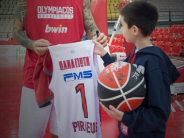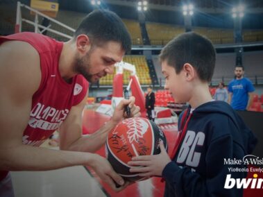 «Εύχομαι να κάνω προπόνηση με την αγαπημένη μου ομάδα μπάσκετ, τον Ολυμπιακό…» Αυτή ήταν η μία και μοναδική ευχή του Παναγιώτη μας! «Θέλω να βρεθώ στο γήπεδο της ΟΜΑΔΑΡΑΣ μας, να συναντήσω όλους τους παίκτες και τον προπονητή από κοντά. Να δω πώς κάνουν προπόνηση, να «κλέψω» μερικά από τα μυστικά τους και να τα μοιραστώ με τους συμπαίκτες μου για να εφαρμόσουμε κι εμείς στη δική μας ομάδα!» Αυτά ήταν μερικά από τα γλυκά λόγια του Παναγιώτη, όταν εξομολογήθηκε την ευχή του. Η συζήτηση διήρκησε αρκετή ώρα και ο Παναγιώτης μάς έλεγε για τα κατορθώματα του Σπανούλη, του Πρίντεζη, του Παπανικολάου και των άλλων αθλητών – ηρώων για εκείνον, του Ολυμπιακού. Μάς είπε επίσης πόσο πολύ τους θαυμάζει και τι θα τους ρωτούσε όταν θα τους έβλεπε από κοντά… Και η ευχή του Παναγιώτη θα έβγαινε αληθινή, μόνο που έπρεπε να κάνει υπομονή και να περιμένει λίγο καιρό μέχρι να έρθει αυτή η στιγμή! Οι μέρες περνούσαν και ο Παναγιώτης μας είδε την ευχή ενός άλλου Παναγιώτη να γίνεται πραγματικότητα… Μία ευχή που ήταν σαν την δική του, να βρεθεί δίπλα στα κοινά τους ινδάλματα! Και ο Παναγιώτης που περίμενε να γίνει η ευχή του, χάρηκε πραγματικά που είδε να εκπληρώνεται η ευχή του άλλου παιδιού και η χαρά αυτή ήταν κοινή για τους συνονόματους!