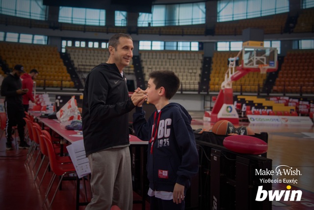 Η ημέρα έφτασε, το ρολόι έδειξε 3 ακριβώς και το όνειρο του Παναγιώτη βγήκε αληθινό! Έφτασε στο ΣΕΦ όπου όλοι οι άνθρωποι της ΚΑΕ Ολυμπιακός τον υποδέχτηκαν με μεγάλη χαρά και μπήκε μέσα στο γήπεδο. Εκεί όπου σε λίγη ώρα θα συναντούσε τα πρότυπά του. Η ομάδα βγήκε από τα αποδυτήρια και το πρόσωπο του Παναγιώτη έλαμψε ξανά! Οι παίκτες, ο προπονητής, το τεχνικό επιτελείο, όλοι όσοι ήταν εκεί σε αυτή την τόσο ξεχωριστή ημέρα για τον Παναγιώτη τον έκαναν να αισθανθεί μέλος της ομάδας! Η ευχή του είχε γίνει πραγματικότητα… Τώρα πια τίποτα δε θα ήταν το ίδιο με πριν…