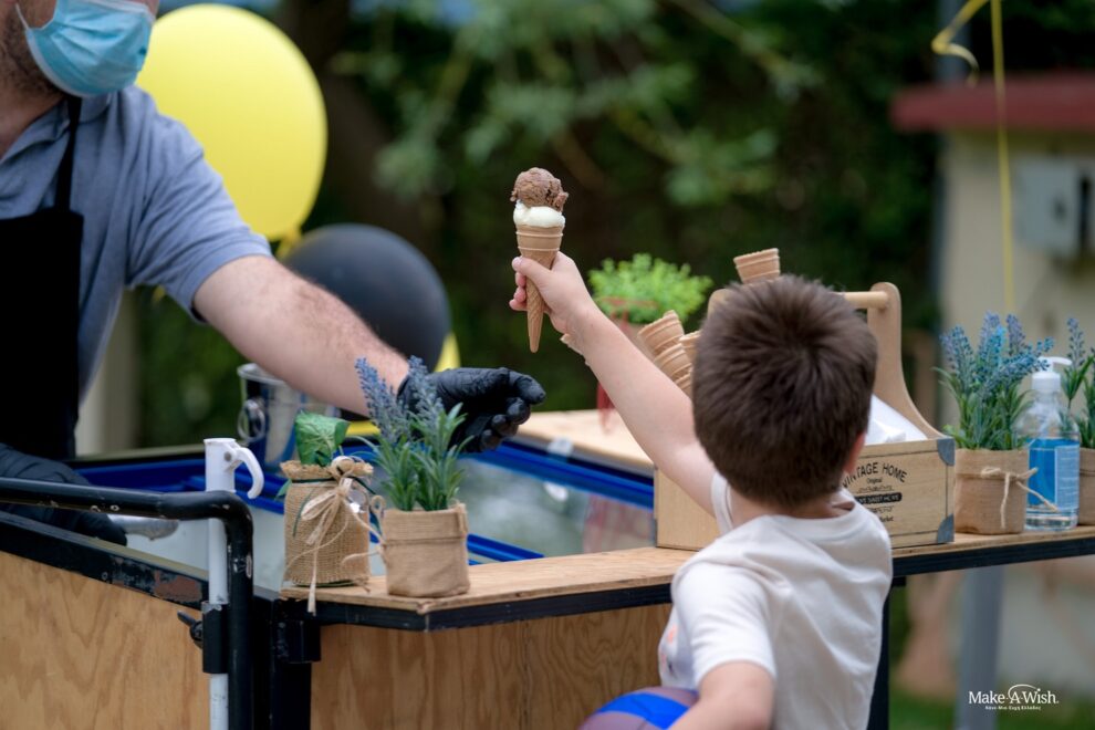 Μία αψίδα από κιτρινόμαυρα μπαλόνια στόλισε το γήπεδο, λουλούδια τοποθετήθηκαν στον χώρο που θα κάθονταν οι γονείς και λαχταριστά παγωτά διαφόρων γεύσεων ήταν στη διάθεσή των καλεσμένων καθ’ όλη τη διάρκεια της ευχής!
