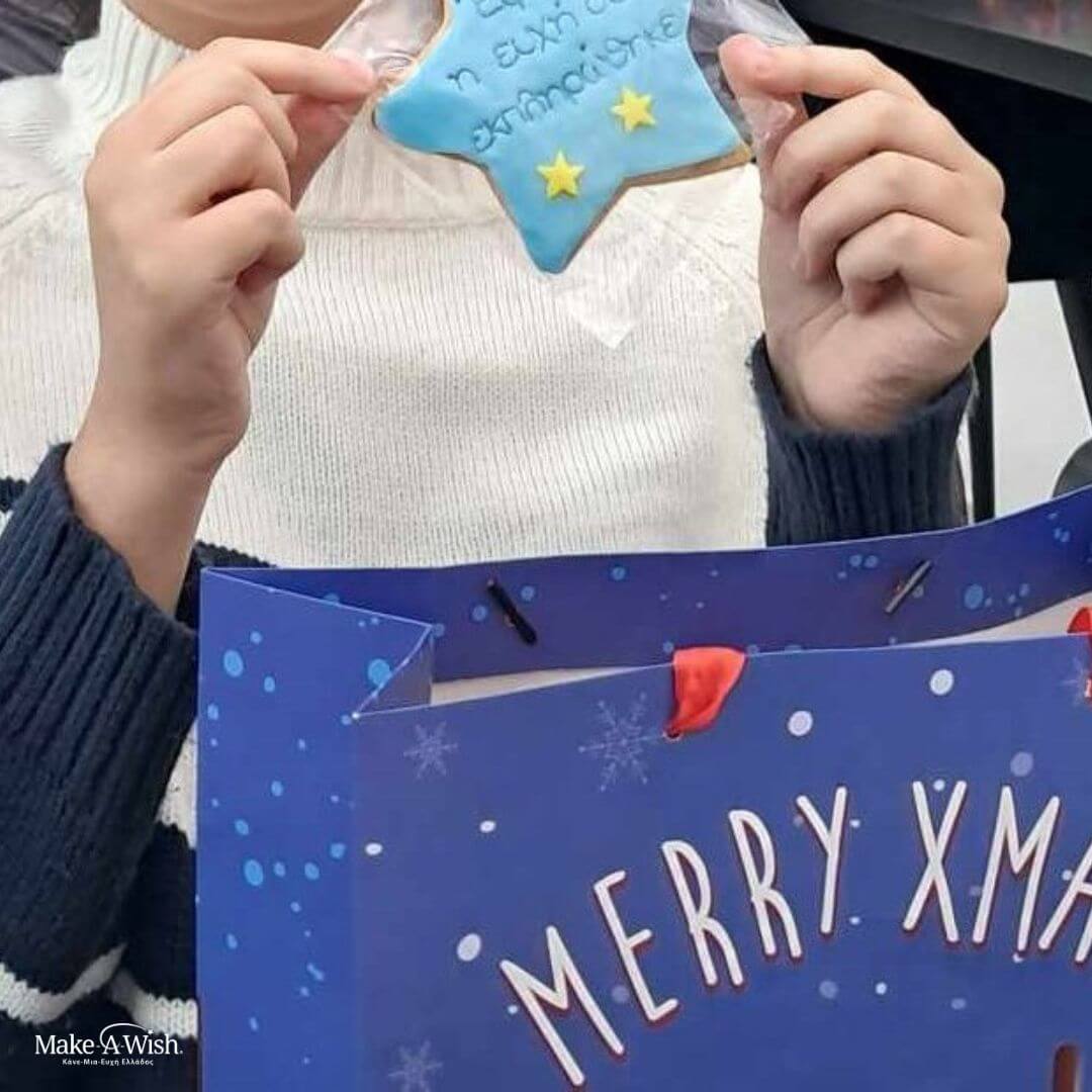 Μόλις πήραμε την έγκριση από τους γιατρούς της, όλα οργανώθηκαν λεπτομερώς και μία ωραία μέρα η Ε. συναντήθηκε με τα ξωτικά του Οργανισμού σε μεγάλο πολυκατάστημα, για να ξεκινήσουν μαζί αυτή τη μοναδική περιήγηση στα μαγαζιά. Στο πρώτο κατάστημα, το κορίτσι μας μην μπορώντας να πιστέψει σε αυτό το τόσο μεγάλο εύρος επιλογών, ήταν διστακτική. Με την παρότρυνση των ξωτικών, ξεκίνησε δειλά-δειλά να διαλέγει ρούχα και ακολούθησε και η δοκιμή τους. Αυτό ήταν! Η αρχή είχε γίνει. . Για τις επόμενες ώρες, δοκίμαζε ρούχα, αξεσουάρ και παπούτσια σε διάφορα μαγαζιά. Το μεσημέρι, είχε έρθει η ώρα για διάλειμμα και λίγη ξεκούραση. Σ’ ένα όμορφο εστιατόριο, απόλαυσαν ένα λαχταριστό γεύμα και τα ξωτικά της έδωσαν μια μικρή έκπληξη από τη νεράιδά της: πολλά μπισκότα και ένα από αυτά σε σχήμα αστεριού, που έγραφε επάνω ότι η ευχή της εκπληρώθηκε! Τα μπισκότα αυτά θα μπορούσε να τα πάρει μαζί της την επόμενη μέρα, που θα ταξίδευε για το σπίτι της. Η Ε. χάρηκε πάρα πολύ!