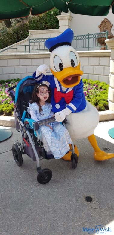 Η Γεωργία μας είναι ένα από αυτά τα παιδιά. Για την ακρίβεια, το πρώτο παιδί από την επανεκκίνηση των ταξιδιών μας στην Disneyland, πριν από μερικούς μήνες. Παρόλο που έχει ταλαιπωρηθεί πολύ λόγω της υγείας της, παραμένει μια γλυκύτατη τσαχπινούλα και λατρεύει να έχει την προσοχή των ανθρώπων γύρω της. Είναι επικοινωνιακή και λατρεύει να φωτογραφίζεται! Συνοδοιπόροι της, οι προστατευτικοί γονείς της, που κάνουν τα πάντα για τη μονάκριβη κορούλα τους. Όπως μας είπαν από την πρώτη συνάντηση, «εάν δεν μπορέσει το Κάνε-Μια-Ευχή να εκπληρώσει την ευχή της Γεωργίας, θα κάνουμε αυτό το ταξίδι μόνοι μας». Όμως εμείς τους επιφυλάσσαμε μια έκπληξη Τα εισιτήρια κλείστηκαν και όλοι μαζί ευχηθήκαμε «bon voyage» στην οικογένεια!