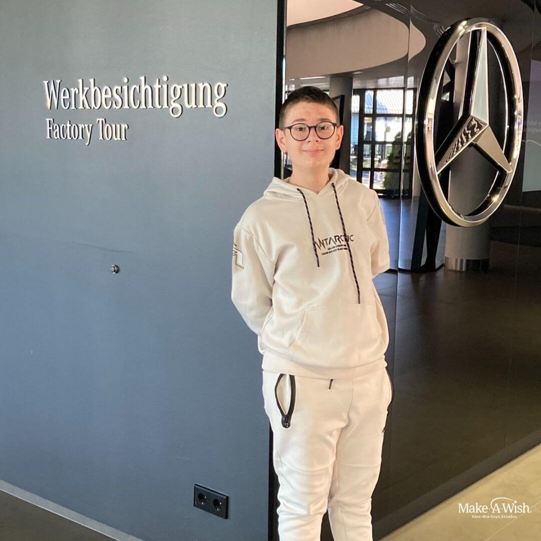 Στη συνάντησή μας με τον Λεωνίδα, ήταν εύκολο να καταλάβουμε την αγάπη του για τα ταξίδια και για τα αυτοκίνητα. Έτσι, λοιπόν, δεν μας έκανε εντύπωση που η ευχή του συνδυάζει και τα δύο: Εύχομαι να πάω στο Mercedes-Benz Plant, στη Γερμανία, μας είπε. Η ιστορία της αυτοκινητοβιομηχανίας και η εξέλιξή της αποτελούν πάντα για εκείνον ένα μεγάλο ενδιαφέρον και, επιτέλους, είχε την ευκαιρία να ζήσει από κοντά αυτήν την εμπειρία.