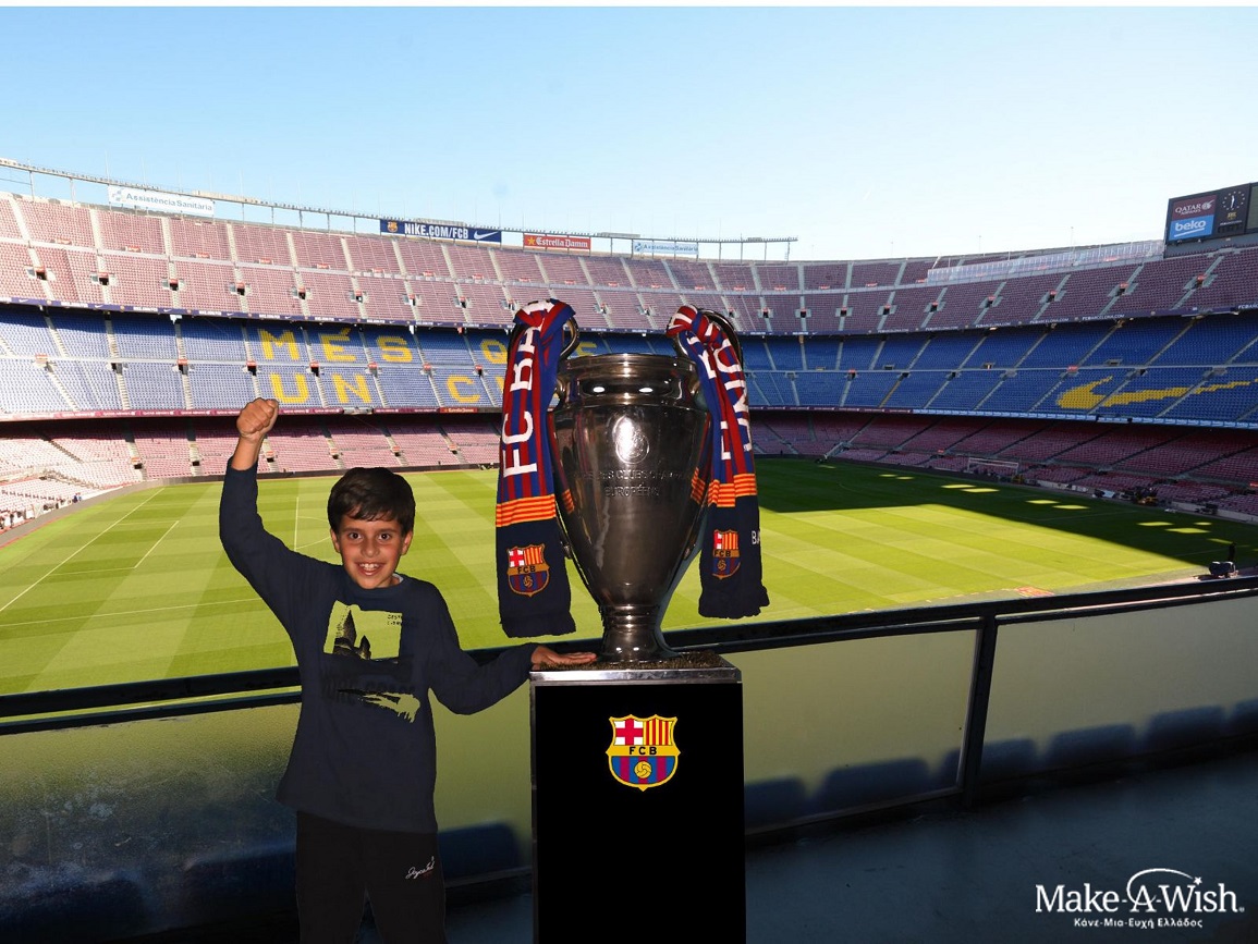 Η επόμενη ημέρα ήταν αυτή που περίμενε τόσο καιρό με λαχτάρα. Η μέρα που θα έβλεπε αγώνα της αγαπημένης του ομάδας. Ήταν η ημέρα που θα ζούσε μια ανεπανάληπτη εμπειρία και θα παρακολουθούσε αγώνα Champions League μεταξύ FC Barcelona vs Bayern Munich. Μαζί με την μπλούζα και την σημαία της ομάδας καθώς και τα δώρα του με το σήμα της Barca που του χάρισαν, ζητοκραύγαζε στις κερκίδες του Camp Nou και θαύμαζε από μικρή απόσταση τους αγαπημένους του ποδοσφαιριστές. Το κλίμα μέσα στο γήπεδο από τους φιλάθλους της ομάδας θα μας μείνει αξέχαστο.