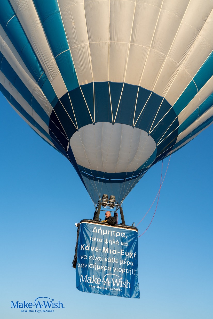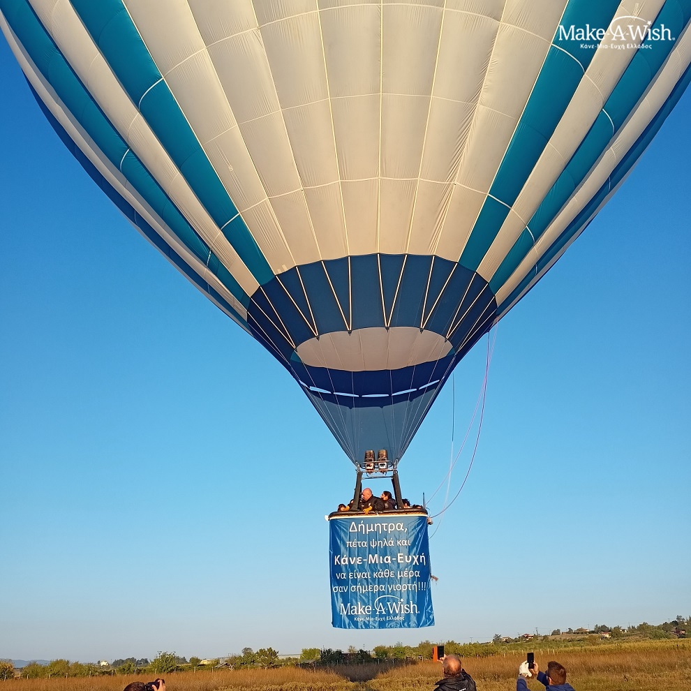 Όταν ήρθε η ημέρα της ευχής, είδαμε τη μαγεία με τα μάτια μας! Φτάνοντας στον χώρο από τον οποίο θα απογειωνόταν το αερόστατο, ο ιδιοκτήτης με μεγάλο ενθουσιασμό, άρπαξε τη μικρή μας και με μία κίνηση την ανέβασε στο καλάθι! Όλα έγιναν τόσο γρήγορα, που ξωτικά και οικογένεια έτρεχαν να πάρουν τη θέση τους στο αερόστατο για να αγναντέψουν λίγο αργότερα από ψηλά ολόκληρη τη Θεσσαλονίκη!