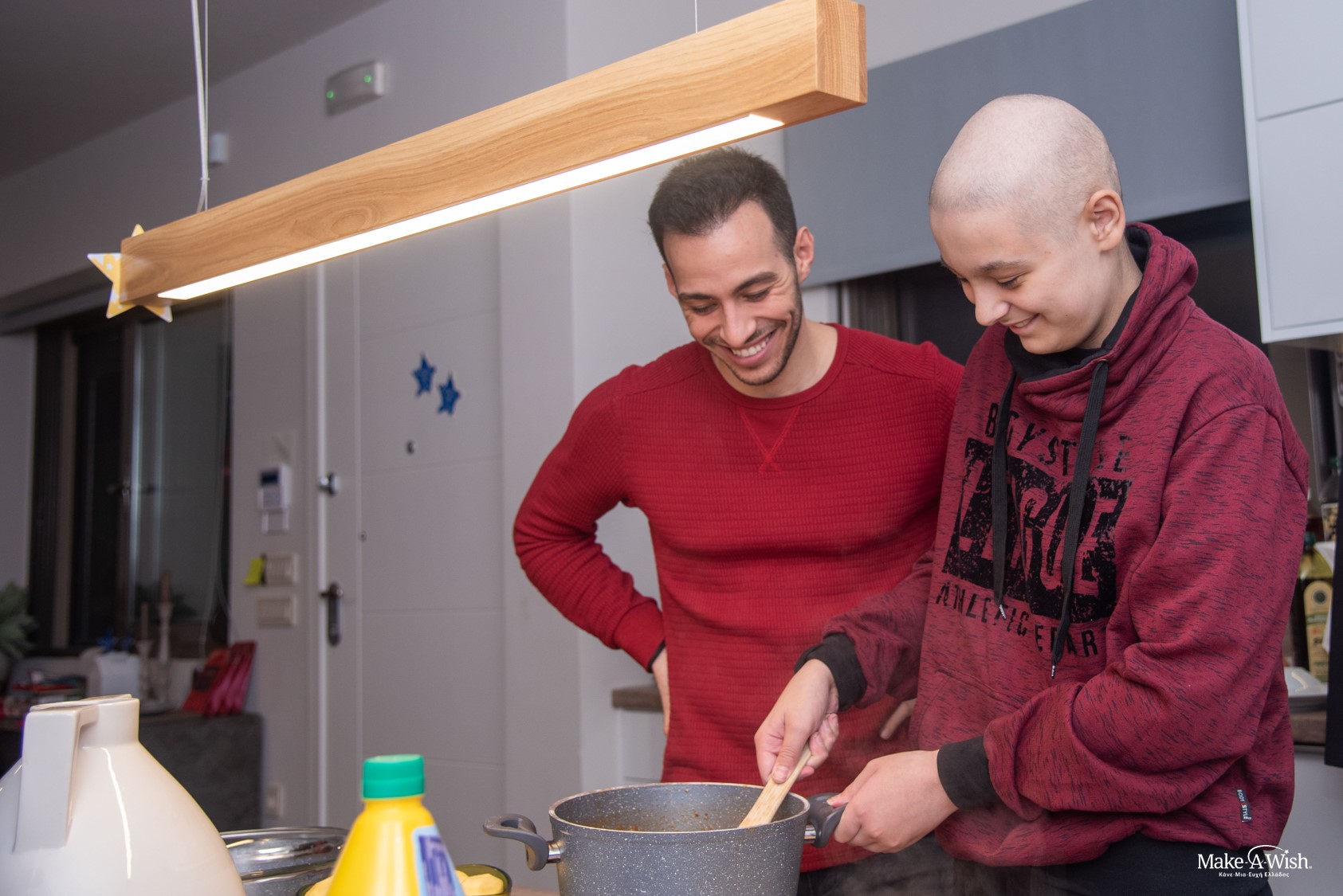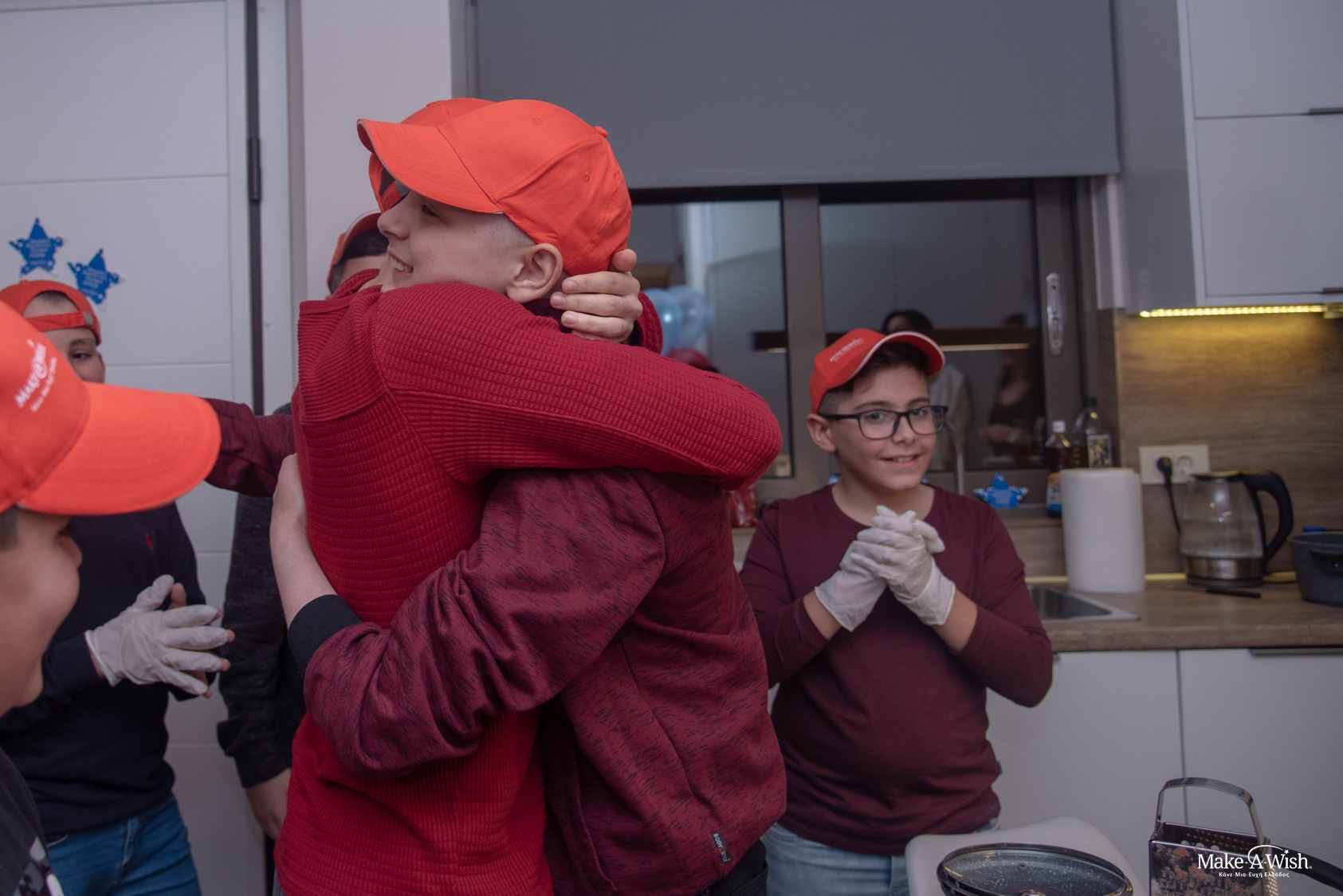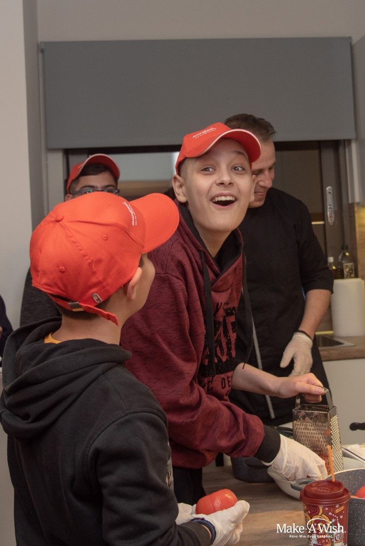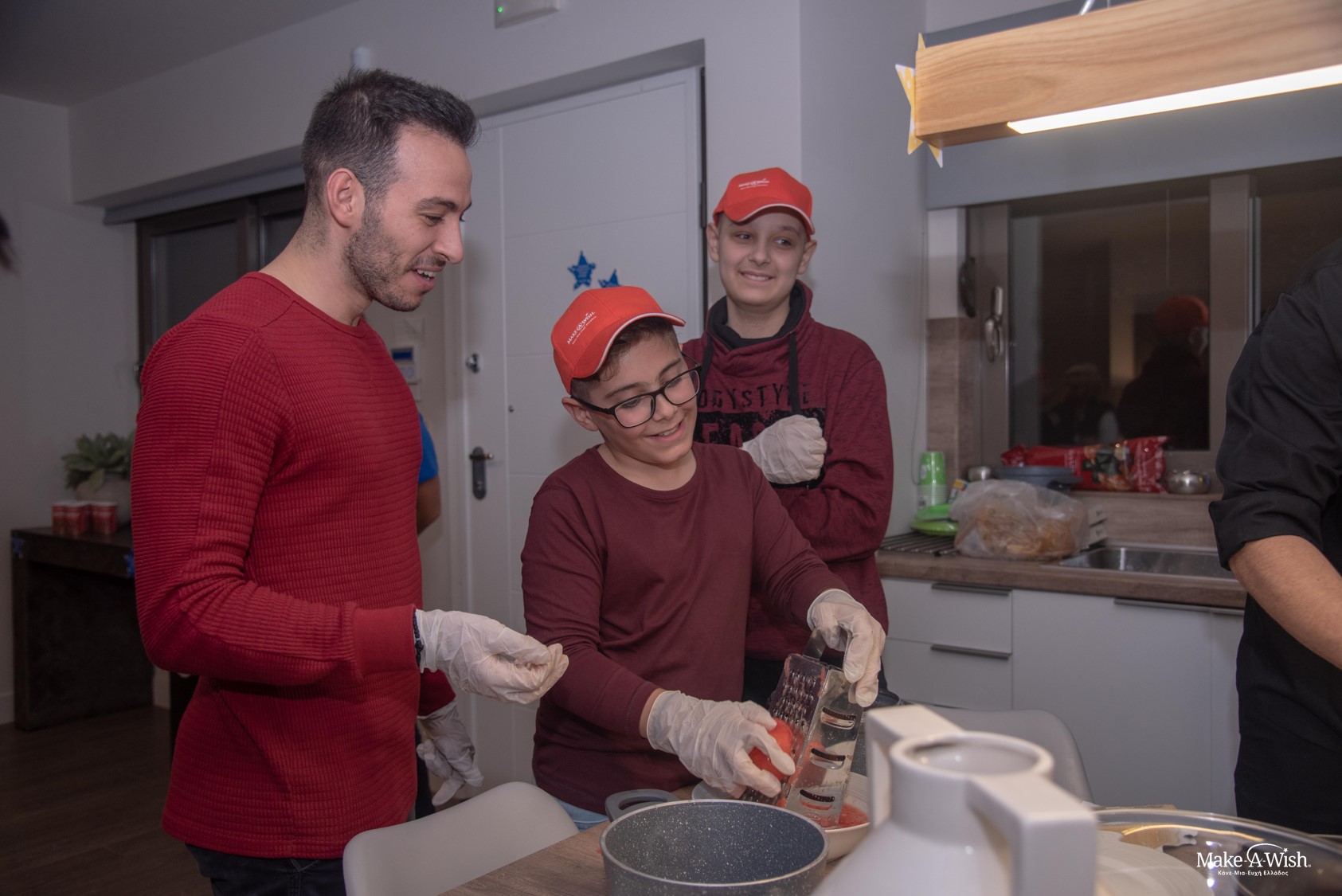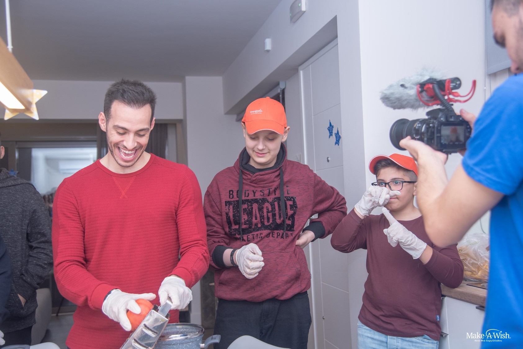 Ο χρόνος κυλούσε σαν αστραπή και έπρεπε να προλάβουν να ετοιμάσουν το γεύμα. Ψωμάκια, κιμάς, γλυκά χαμόγελα και ευτυχισμένα μάτια αποτελούσαν τα συστατικά και δημιούργησαν την πιο νόστιμη συνταγή. Εξαιρετικό το αποτέλεσμα και η επιβράβευση των μικρών μας μαγείρων ήταν ανταλλαγή αναμνηστικών, αφιερώσεων, μπλουζάκια με υπογραφές. Σε μια τόσο γλυκιά μέρα δε θα μπορούσε να απουσιάζει και ένα λαχταριστό γλυκό, το οποίο επισφράγισε την εκπλήρωση της ευχής του Δημήτρη μας.