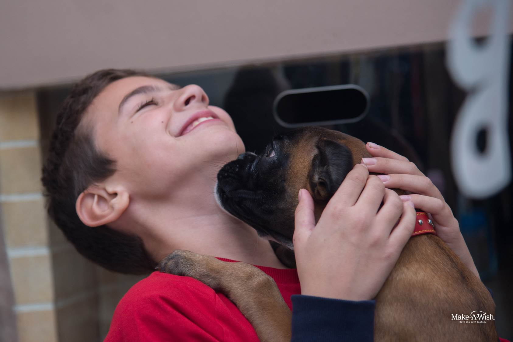 Leonidas is suffering from a disease called cell histiocytosis and his treatment lasted for quite a while. Our little friend was really patient and tried even harder so that he would get better and acquire his new best friend and companion! When the doctor said he could, he immediately called us at Make-a-Wish to grant his Wish!