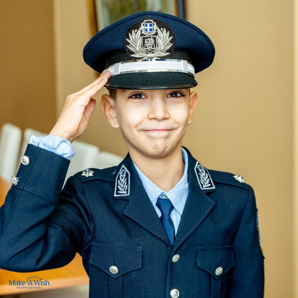From the moment we first met Panagiotis, we immediately sensed his excitement and love for the police. So, when we asked him what his wish would be, he didn’t hesitate for a second: to become a police officer! He imagined himself wearing a uniform full of medals, leading a team of officers, and creating strategic plans to capture criminals.