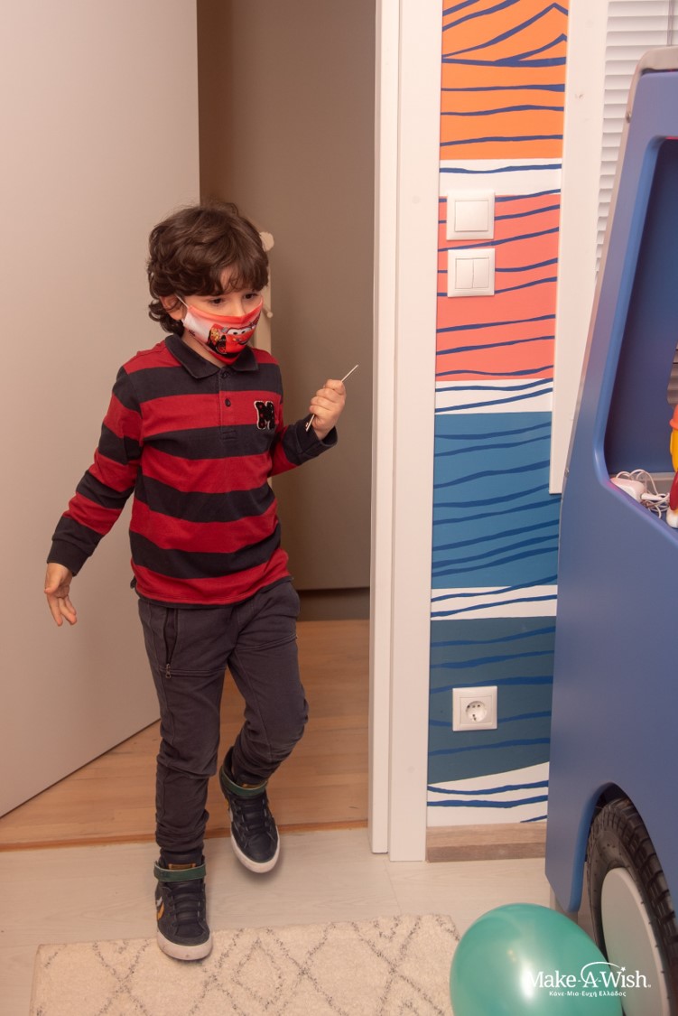 He had grown and as a strong hero dealing with beasts that only few would dare the time for him to live in his own room had come. He was sure about two things: firstly, he wanted a bed that looked like a van – which in fact he showed us in a photo, so there would be no doubts – and secondly, he wanted his room to have bright and happy colors. A lot of fairy-meetings and a whole army of elves were needed in order to make a reality, what Panagiotis had in mind. Everything had to be on point, with details and coordination! The pandemic couldn’t be an obstacle. With love and dedication, proper measures were taken, and the room took its primary form!