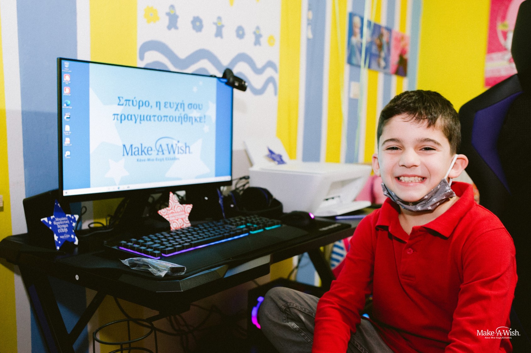 The Scotland deal wasn’t over yet though! The next surprise was a VR headset, with which the young boy had the chance to travel, at least virtually, there and observe stunning videos. In the meantime, the computer had been concluded and the time for him to see the whole system had come. The screen wrote “Spyros your wish has been granted” and for him it was the most important thing! Afterall, that what he answered to the fairy when she asked what was his favorite part of the surprise: “This, what the screen says! That my wish has been granted!”