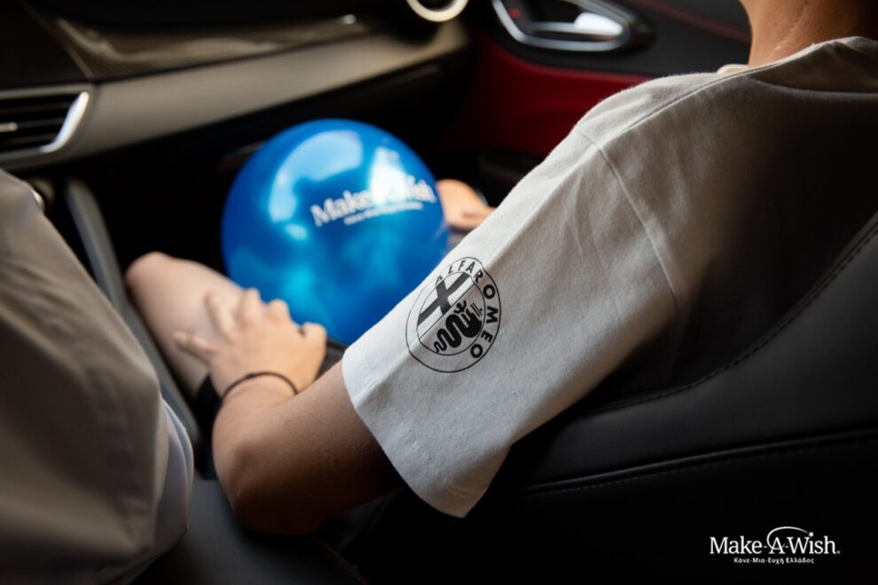 When they returned, his joy was indescribable! He was so excited and so happy that until he told us: “After all, it was probably better that I decided to change my wish!”! And he had not even received his new phone yet! After letting him tell us in every detail about their ride and how amazing the car was, we gave him a bag full of gifts and he began to unwrap the packages with anticipation. A lot of the items were branded with his favorite Alfa Romeo logo. He now had all the accessories, but the mobile phone was nowhere to be found!