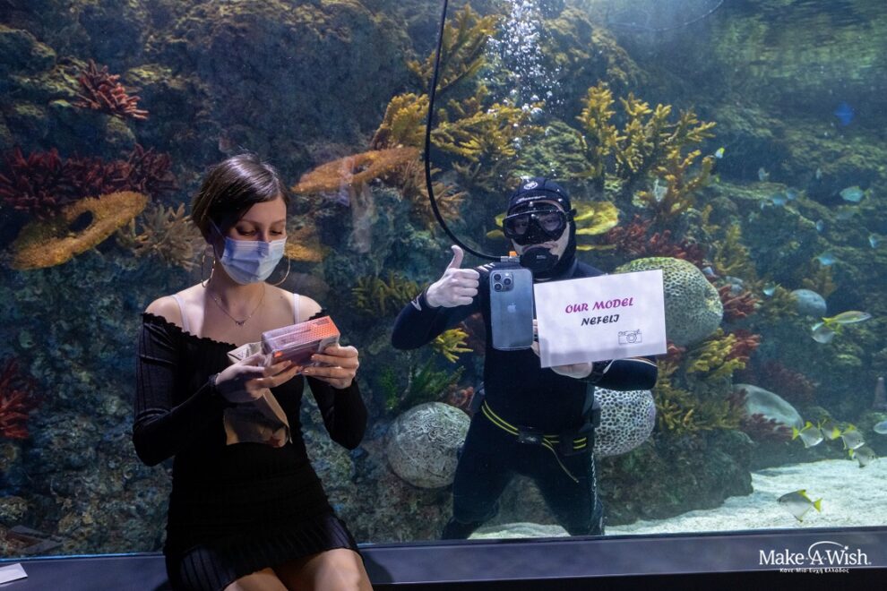 The big day was going to keep her in the ultimate suspense! First stop? A – not that simple – visit at an aquarium. While she was wandering among the wonders of marine life, she suddenly saw a diver in one of the tanks heading towards her. The diver putted a message on the glass. Impressed and surprised at the same time, Nefeli approached the tank to read the message held by the mysterious diver. It was a riddle… A riddle whose solution was revealing where her new smartphone was hidden! Hesitant, yet excited, she followed the instructions step by step. Every single piece of the puzzle was about to lead her to the big moment… the granting of her wish!