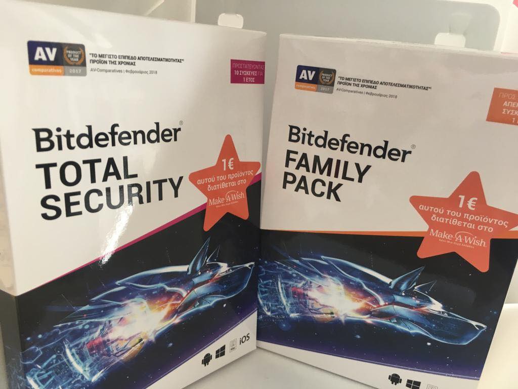 Η Bitdefender υποστηρίζει το Make-A-Wish (Κάνε-Μια-Ευχή Ελλάδος) με τα προϊόντα της Bitdefender TOTAL SECURITY και Bitdefender FAMILY PACK. Με κάθε προϊόν που προμηθεύεστε η εταιρεία δωρίζει 1€ για ορισμένο αριθμό τεμαχίων. Παράλληλα η Bitdefender έχει αναλάβει την προστασία όλων των υπολογιστών του Οργανισμού, αλλά και των υπολογιστών που αφορούν σε ευχές παιδιών για όλη τη χρονιά, παρέχοντας δωρεάν λογισμικό. Τους ευχαριστούμε για την πολύτιμη υποστήριξή της!