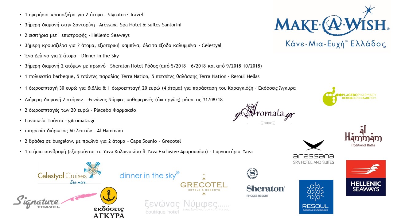 Το Make-A-Wish (Κάνε-Μια-Ευχή Ελλάδος) πραγματοποίησε την ετήσια λαχειοφόρο αγορά της Αθήνας για το 2017 – 2018 και η κλήρωση έλαβε χώρα ηλεκτρονικά.