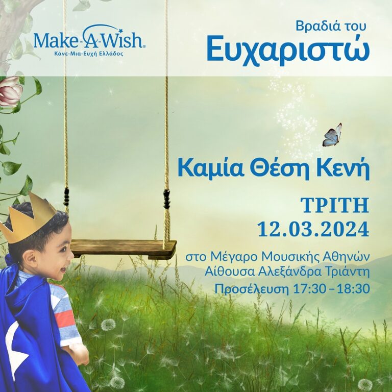 Η ετήσια Βραδιά του Ευχαριστώ πλησιάζει και είναι στις 12 Μαρτίου 2024 στο Μέγαρο Μουσικής Αθηνών, αίθουσα ΤΡΙΑΝΤΗ. Φέτος, δεν θα μείνει ΚΑΜΙΑ ΘΕΣΗ ΚΕΝΗ! Μπείτε στο άρθρο και μάθετε περισσότερα.