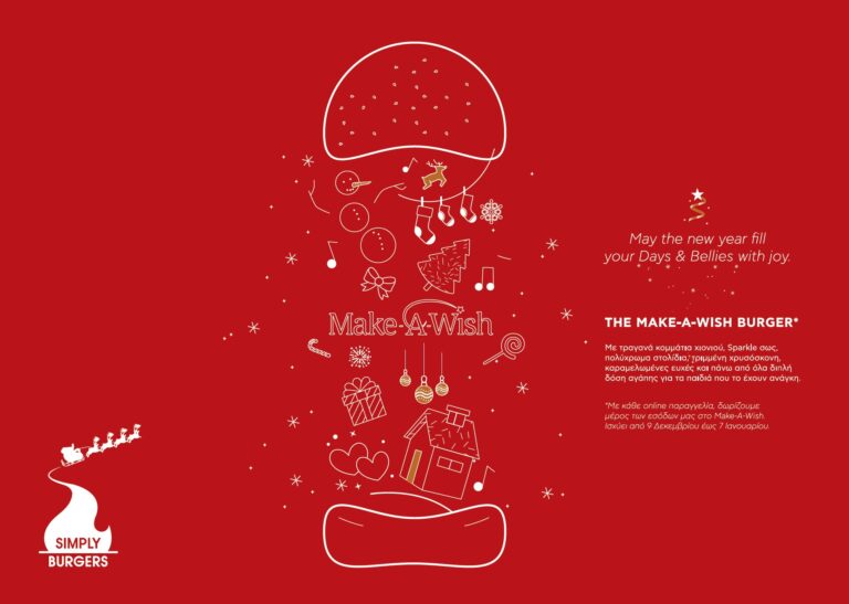 Αυτές τις γιορτές τα Simply Burgers στηρίζουν για ακόμη μία χρονιά το έργο του Make-A-Wish Ελλάδος. Ενισχύουν τη συνταγή του burger με δύο επιπλέον συστατικά, προσθέτουν μια δόση προσφοράς και πασπαλίζουν με μπόλικη αγάπη για να φτιάξουν το Make-A-Wish burger.