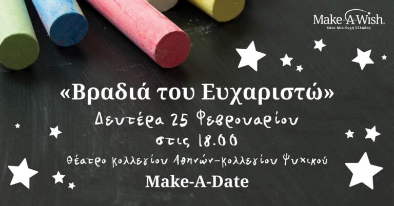 Τη Δευτέρα 25 Φεβρουαρίου και ώρα 18:00 σας περιμένουμε στο Κολλέγιο Αθηνών, στη Βραδιά του Ευχαριστώ. Πρόκειται για μία δωρεάν εκδήλωση απολογισμού μα, πρωτίστως, είναι μία ΞΕΧΩΡΙΣΤΗ ΕΜΠΕΙΡΙΑ.