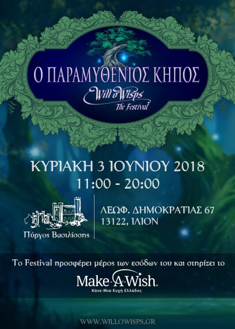 Will o’ Wisps’ Festival «Ο Παραμυθένιος Κήπος». Ένα μαγικό παραμύθι θα γραφτεί στις 3 Ιουνίου 2018.
