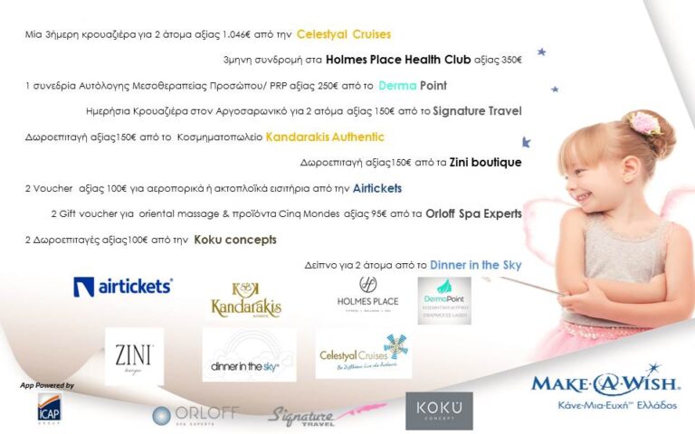 Υποστηρίξτε το Έργο του Make-A-Wish (Κάνε-Μια- Ευχή Ελλάδος) μέσω της αγοράς λαχνών! Μπείτε στη Κλήρωση και Κερδίστε πολλά Πλούσια Δώρα!