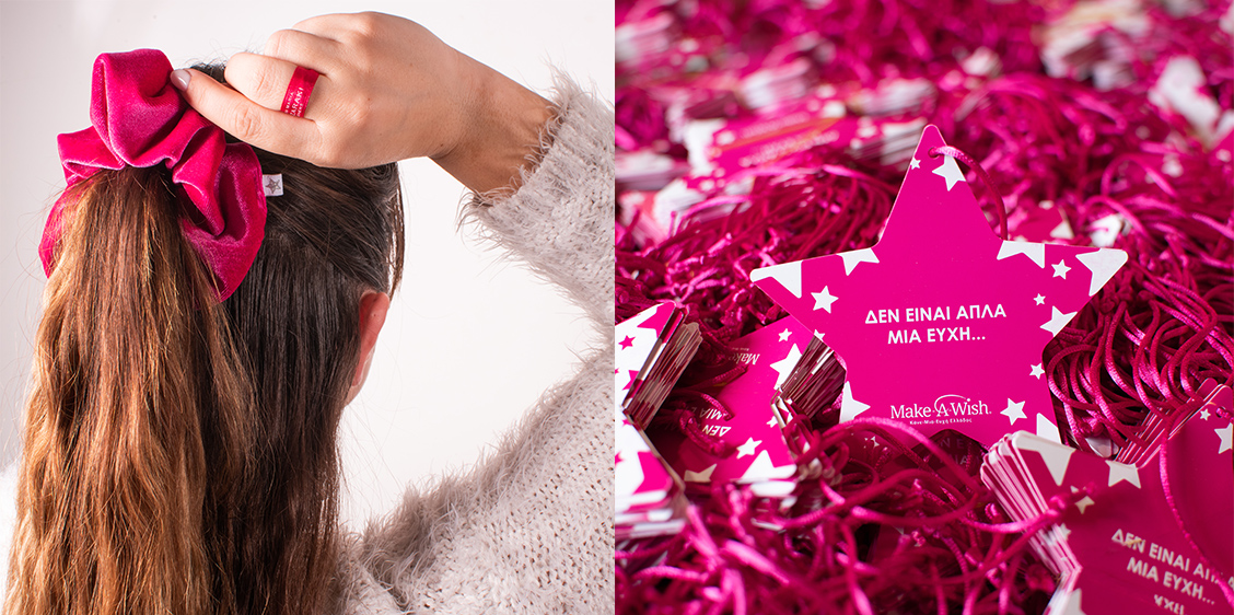 Επιπλέον, αποκλειστικά στο eshop, στο checkout, μπορείτε να βρείτε τα νέα μας απαλά φούξια scrunchies στα 5€. Είναι φτιαγμένα στο χέρι με πολλή αγάπη και έχουν απαλή βελούδινη υφή, ενώ χαρακτηριστικό τους είναι το ασημένιο αστέρι, σήμα κατατεθέν του Make-A-Wish (Κάνε-Μια-Ευχή Ελλάδος).