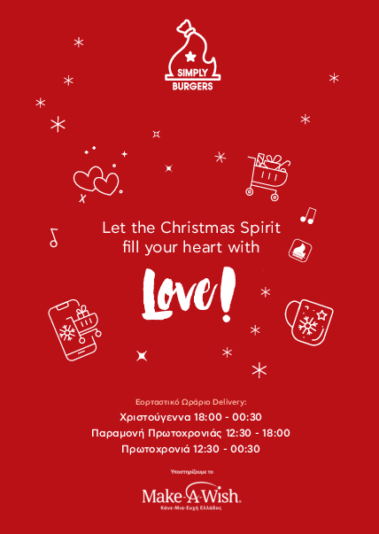 Ένα burger βγαλμένο από την φαντασία των μεγάλων, ικανό να κάνει πραγματικότητα τα όνειρα των μικρών παιδιών που δίνουν μάχη και έχουν ανάγκη να πιστέψουν ότι μπορούν να βγουν νικητές. Έτσι με κάθε παραγγελία μέσω του Simply Burgers App, προσφέρουμε και φέτος μέρος των εσόδων μας για την στήριξη του Make-A-Wish (Κάνε-Μια-Ευχή-Ελλάδος) που εκπληρώνει τις ευχές των μεγαλύτερων μαχητών.