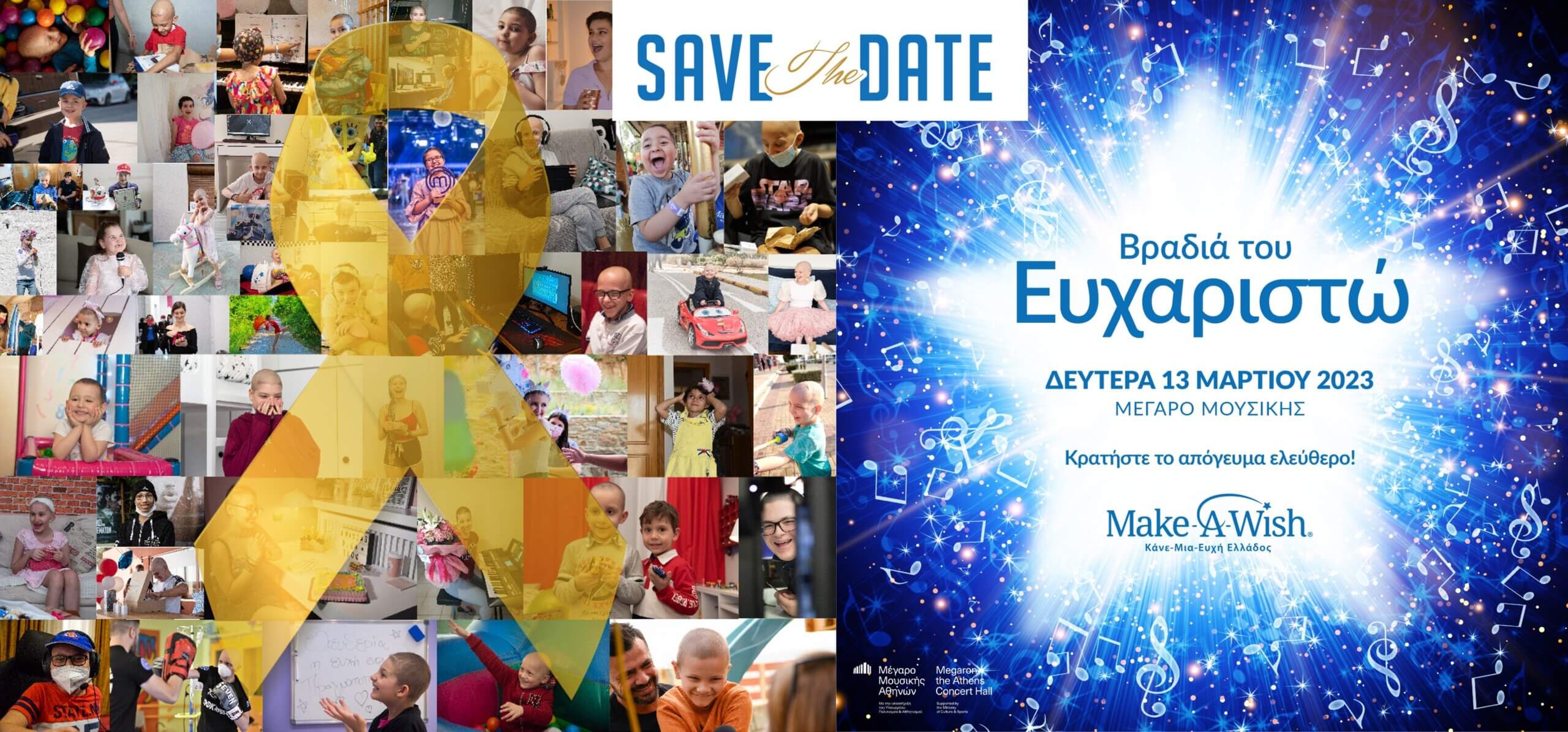 Φέτος, στην επερχόμενη Βραδιά του Ευχαριστώ, στις 13 Μαρτίου, στο Μέγαρο Μουσικής Αθηνών, στην αίθουσα ΤΡΙΑΝΤΗ, θα «συζητήσουμε» για την (ξ)Α-στεριά που ακολουθεί την παύση και το restart. Πλήθος γονέων και παιδιών θα μοιραστούν τις δικές τους ιστορίες και θα μας δώσουν μία «νότα»… ΑΣΤΕΡΩΝ! Κρατήστε το απόγευμά σας ελεύθερο και σύντομα θα μάθετε περισσότερα για το περιεχόμενο της εορταστικής και ενημερωτικής μας εκδήλωσης, που σκοπό έχει τόσο τη διάδοση του έργου μας, όσο και την απόλυτη έκφραση της ευγνωμοσύνης μας προς εθελοντές, χορηγούς, φίλους και υποστηρικτές, παιδιά και οικογένειες, γιατρούς και νοσηλευτικό προσωπικό.